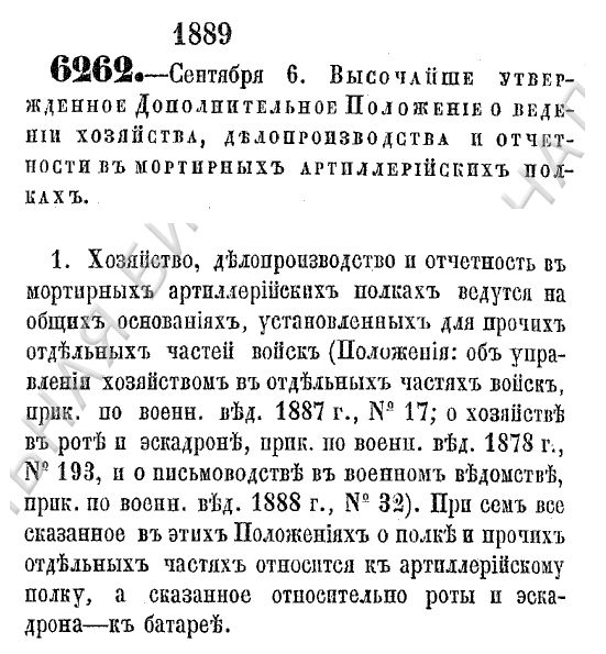 По всей видимости в 1910-х гг. так уже и было, т.к. в "Справочной книжке" 1909 г. приводятся даты батарейных праздников и старшинства мортирных батарей, а в сборнике штатов 1910 г. есть штат мортирной батареи, однако по состоянию на 1889 год ситуация была несколько иной - см. скан