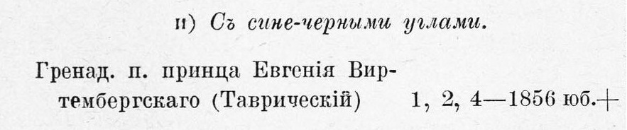 Первая дата там 1726. "1726-1756-1856" Надпись на скобе: "1726 года Тенгинский Пехотный и 1756 г. 2-й Гренадерский полки. 1856 г. Гренадерскаго Его Королевскаго Высочества Принца Виртембергскаго Таврическаго гренадерскаго полка 4-го батальона".